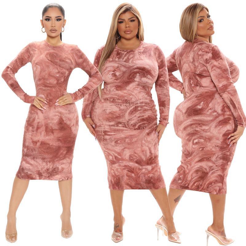 OY279 Amazon gaun wanita Eropa dan Amerika baru pakaian leher bulat celup dasi musim semi mode pelangsing seksi ukuran plus