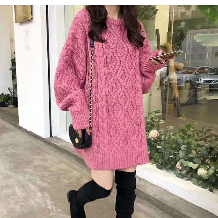 Sweater wanita model Korea terbaru 2025, longgar, oversized, kasual, model twist, panjang sedang, ukuran besar.