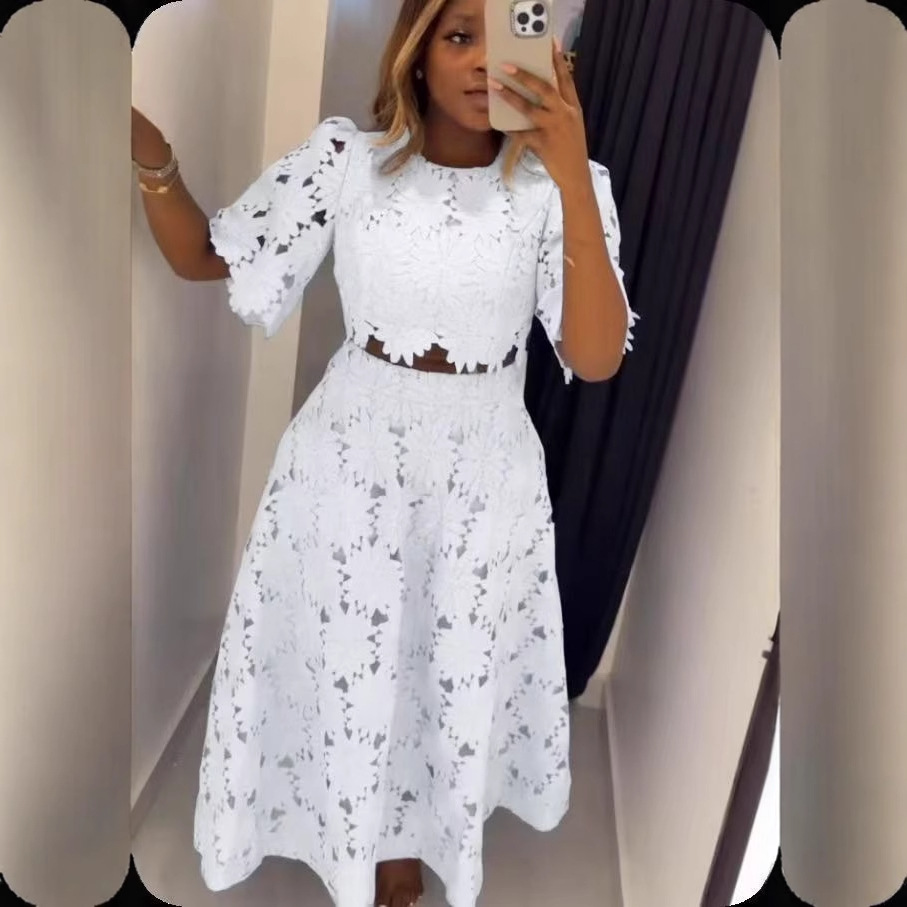 Pakaian Wanita Lintas Batas Eropa dan Amerika Amazon Atasan Berongga Gaya Desain Perancis Model Baru Setelan Kasual Modis Setelan Dua Potong Wanita