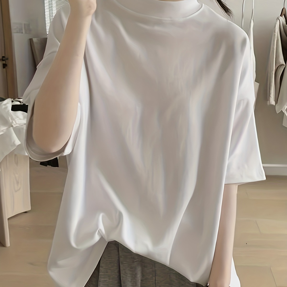 Tiktok kaus leher bulat wanita, Atasan katun pengurang usia, lengan setengah sederhana gaya Korea musim semi baru longgar