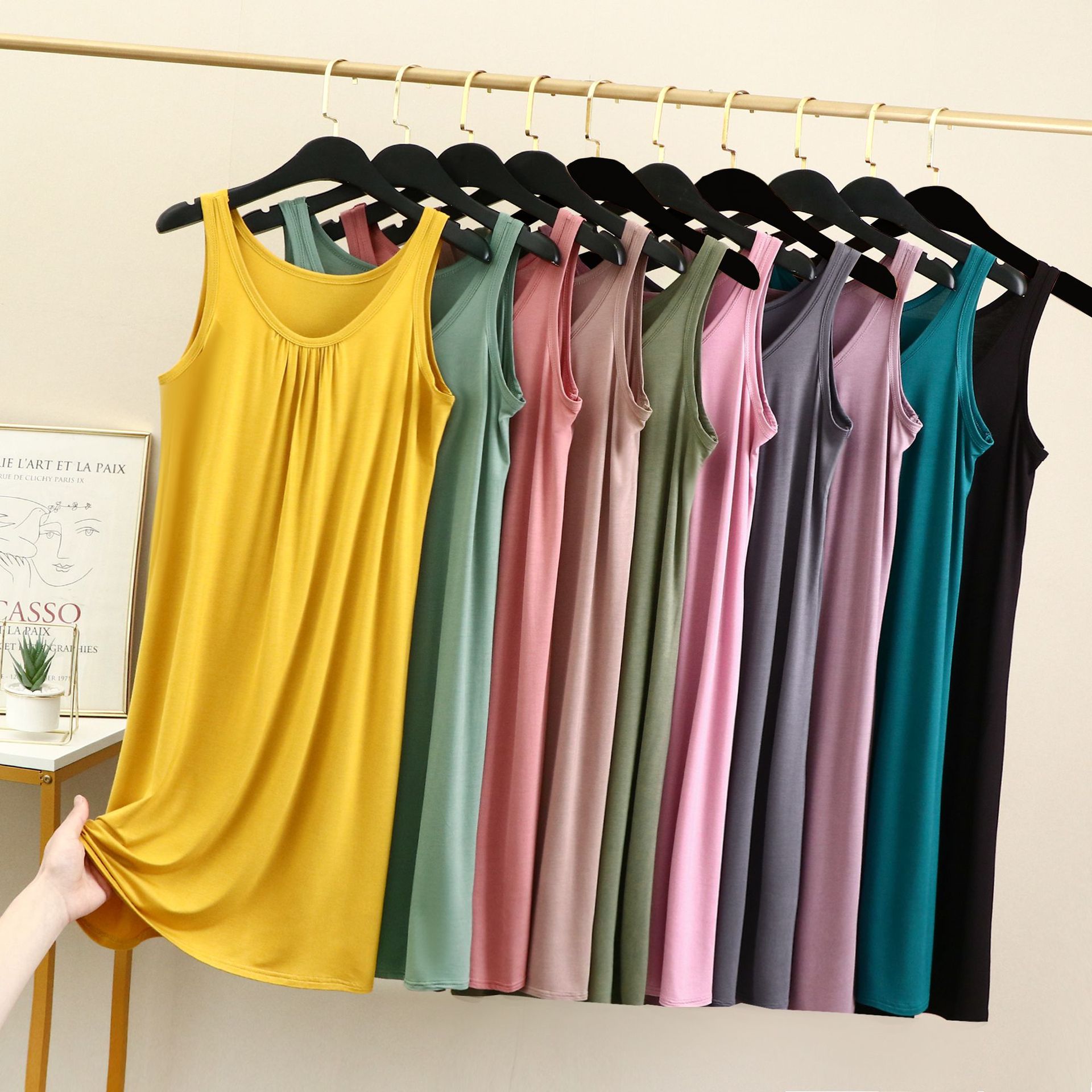 Rok rompi longgar katun bit baru musim panas modal tipis leher bulat tanpa lengan rok Bawahan gaun gadis gemuk
