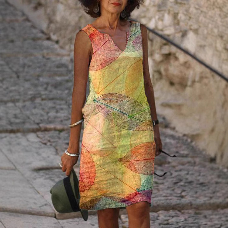 Tersedia 2023 Eropa dan Amerika musim semi dan musim panas harapan baru Amazon AliExpress mode dicetak tanpa lengan gaun panjang menengah