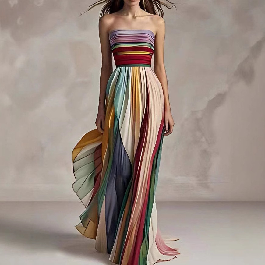 Cross-Border 2025 Stasiun Independen Amazon Model Baru Eropa dan Amerika Seksi Rok Panjang Bercorak Warna Gaun Gaun Jumpsuit Elegan