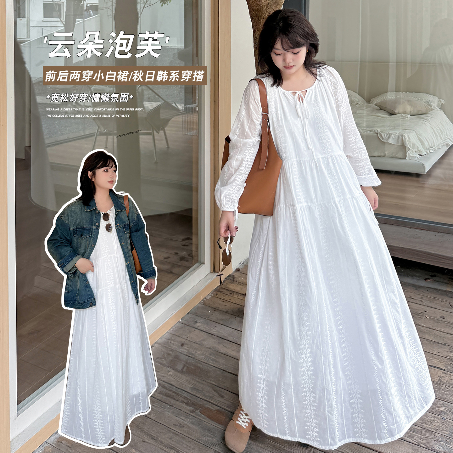 899 Rok Pakaian Wanita Ukuran Besar Longgar Lemak Lengan Panjang Gaun Eropa dan Amerika Pakaian Wanita Hamil Rok Panjang Modis Wanita Gemuk