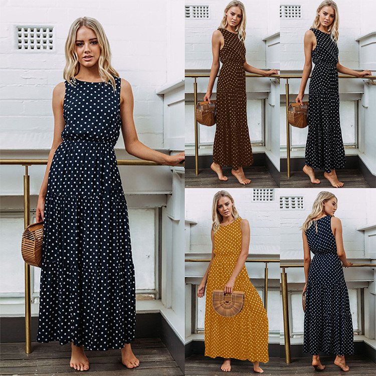 Gaun pakaian wanita 2019 gaun kancing polka dot populer musim semi dan musim panas AliExpress harapan Eropa dan Amerika