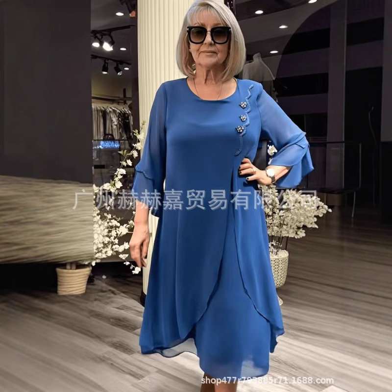 Pakaian Wanita Ukuran Besar Kasual Modis Model Baru Amazon Crossborder 2025 Gaun Gaya Barat Terlihat Langsing Longgar