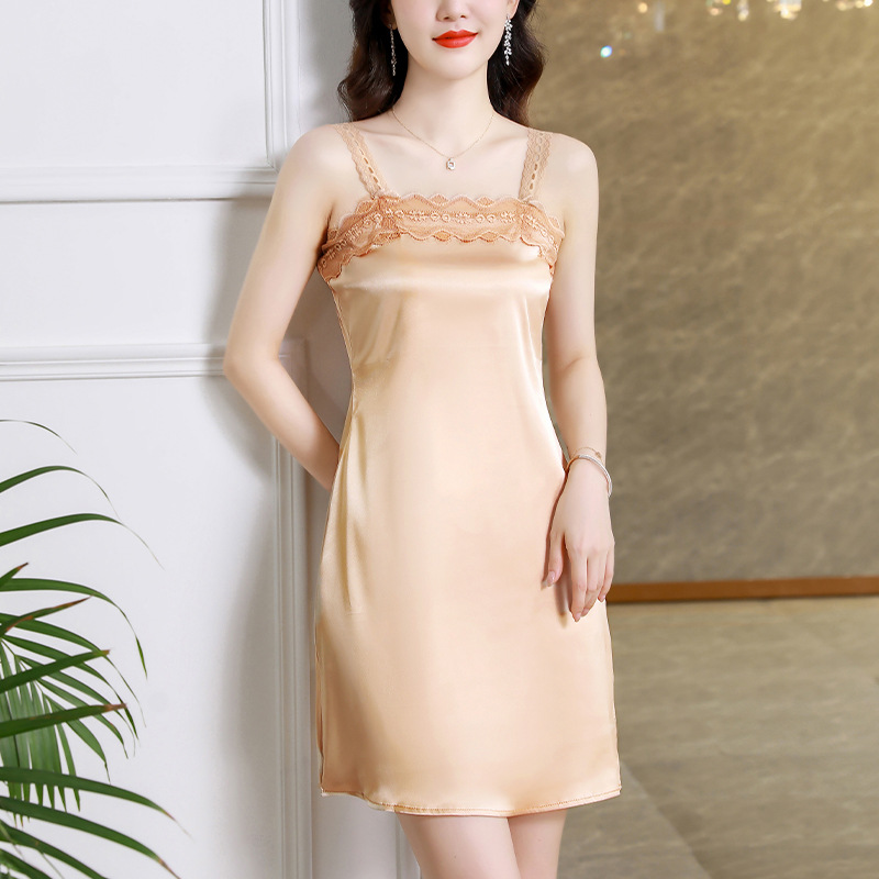 Rok suspender rompi renda wanita musim panas desain baru ceruk rasa ukuran plus pakaian luar gaun sutra murbei seksi