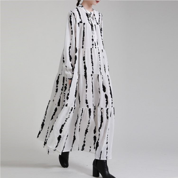 Gaun panjang gaya dewi, Gaun panjang bercetak jahitan ukuran besar lengan panjang musim gugur dan musim dingin 2021