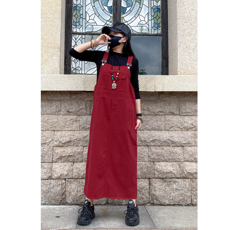 Gaun suspender Semua cocok gaya barat korduroi longgar ukuran besar retro artistik baru musim gugur dan musim dingin 2023