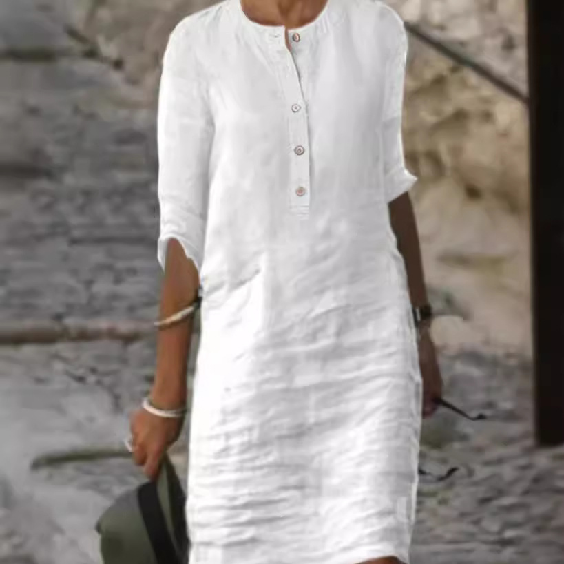 Gaun lengan panjang leher bulat wanita dan katun linen populer AliExpress Amazon baru musim semi lintas batas 2023