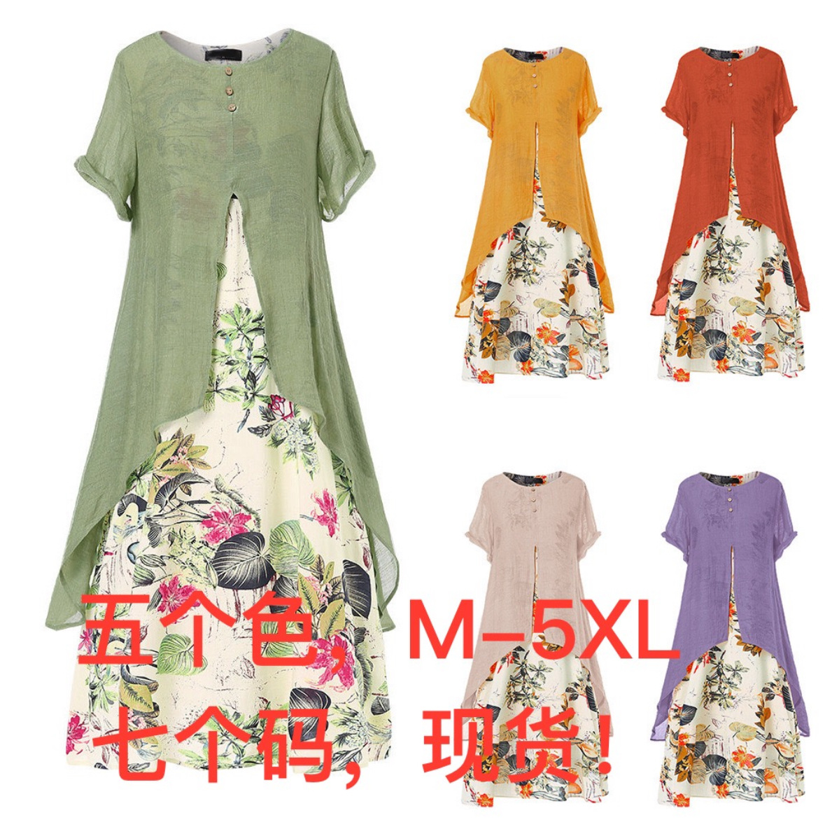 Gaun temperamen Amazon kapas ebay dan gaun bunga linen ukuran besar gaun ayun besar wanita grosir