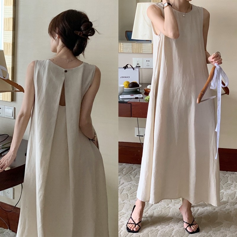 Gaun Tank-top Tanpa Lengan Wanita Gemuk Ukuran Besar Rok Panjang Punggung Terbuka Liburan Pantai Selebriti Internet Model Baru 2025 Musim Panas Anak-anak