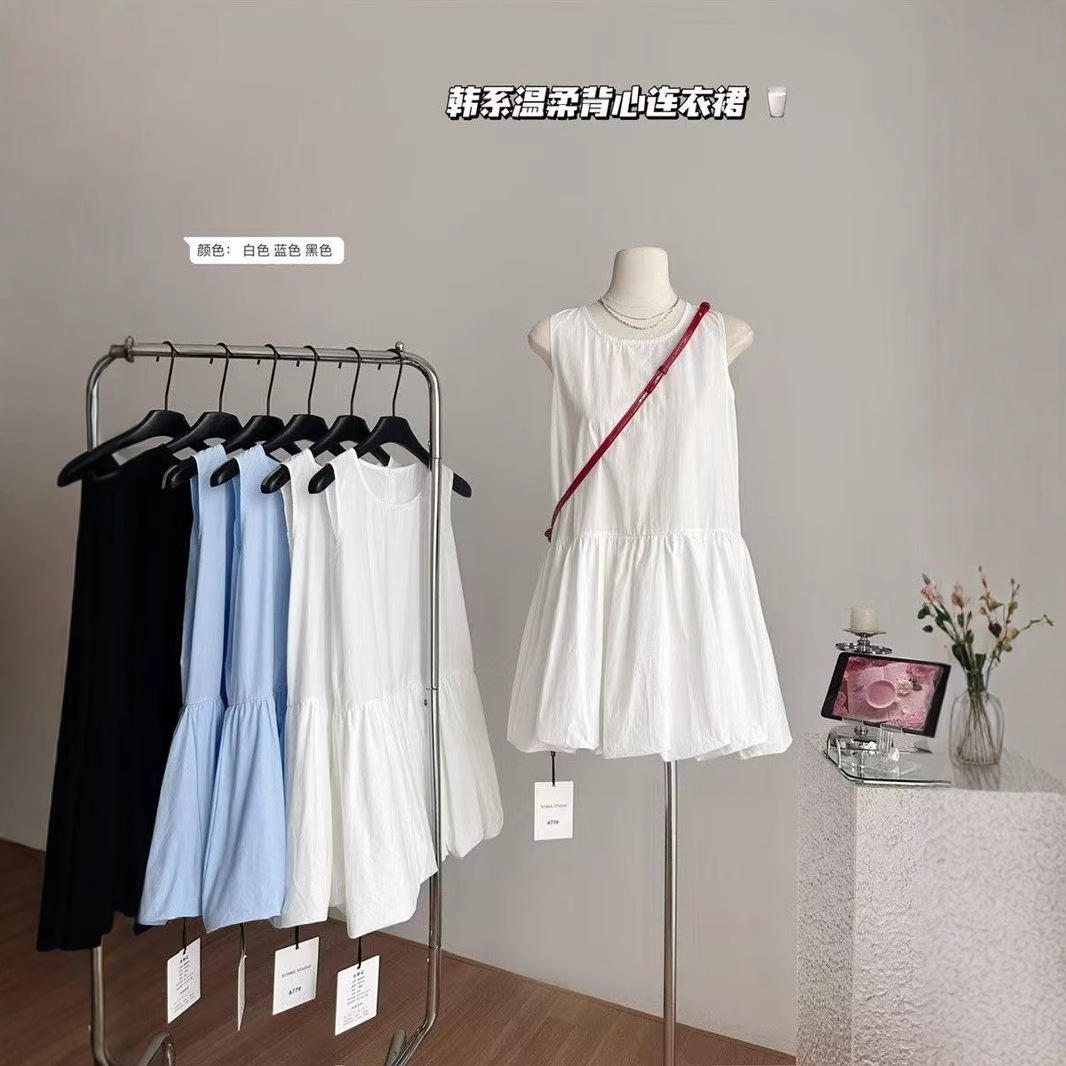Gaun Tank-top Tanpa Lengan Elegan Gaya Korea Lembut Wanita Gemuk Berukuran 300Kg Rok Pendek Kuncup Bunga Gaya Desain Terlihat Kurus