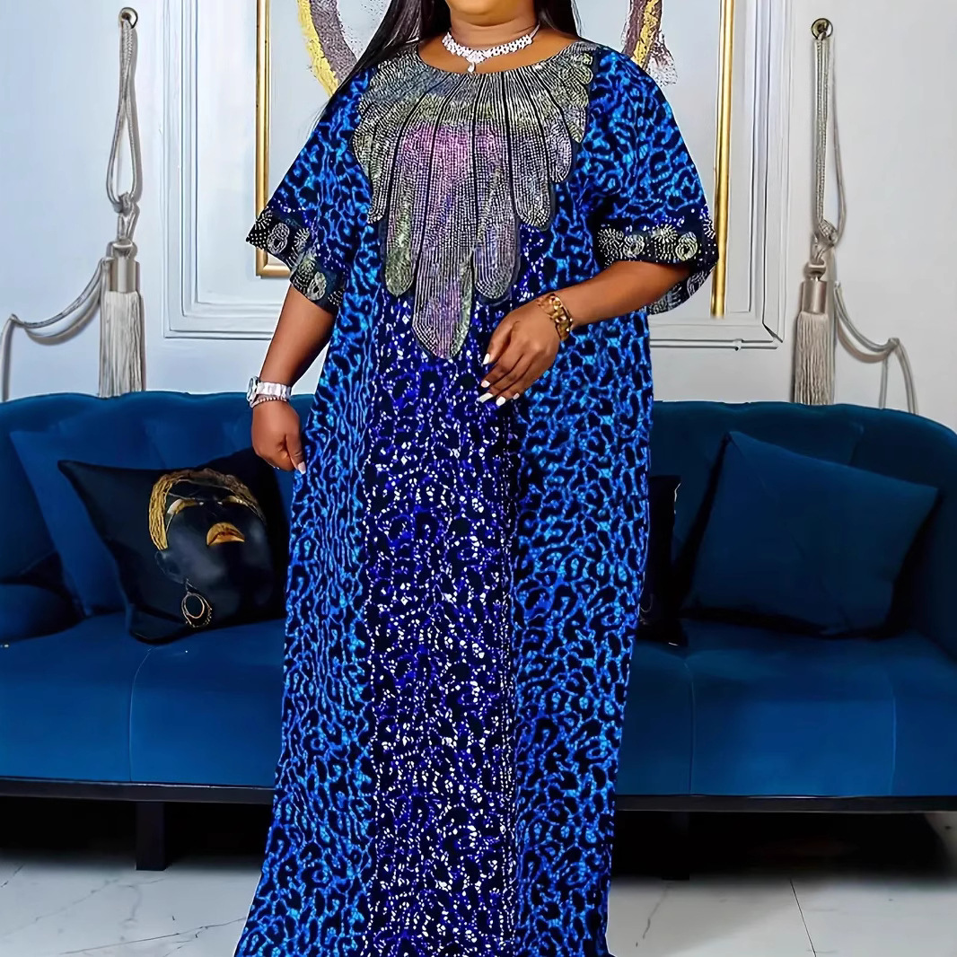 Pakaian Wanita Ukuran Besar Perdagangan Luar Negeri Sartre Gaun Longgar Lengan Pendek Kerah Bulat Motif Bunga Etnis Arab