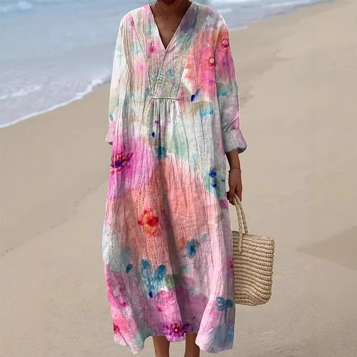 2025 Rok Pantai Kasual Fashion Stasiun Independen Lintas Batas Eropa dan Amerika Gaun Pinggir Daun Teratai Wanita Ukuran Besar Motif Cetak Pusaran Air