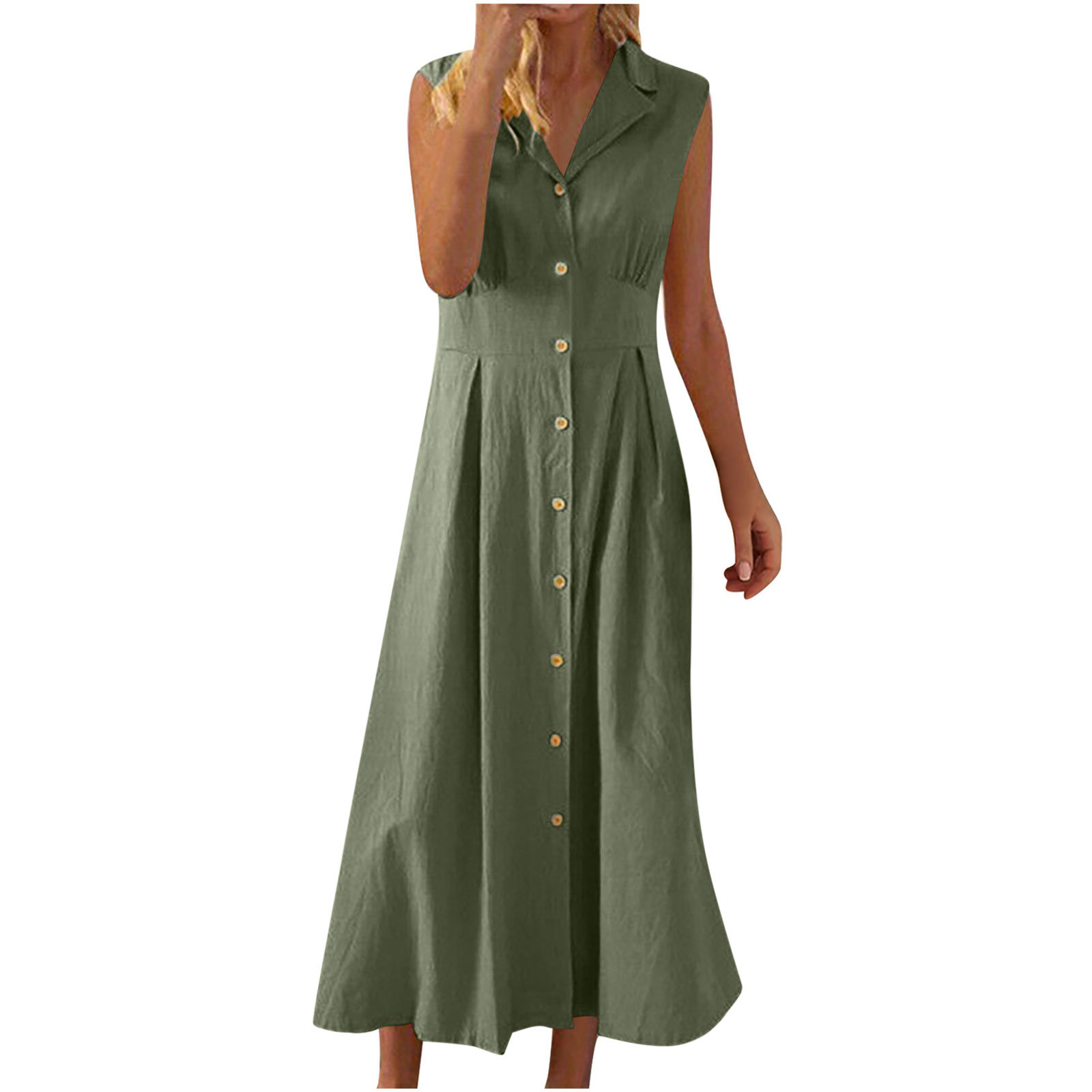 2025 Rok Model Baru Musim Panas Eropa Amerika Gaun Panjang Katun Linen Retro Bentuk A Wanita Kerah Terbalik Amazon
