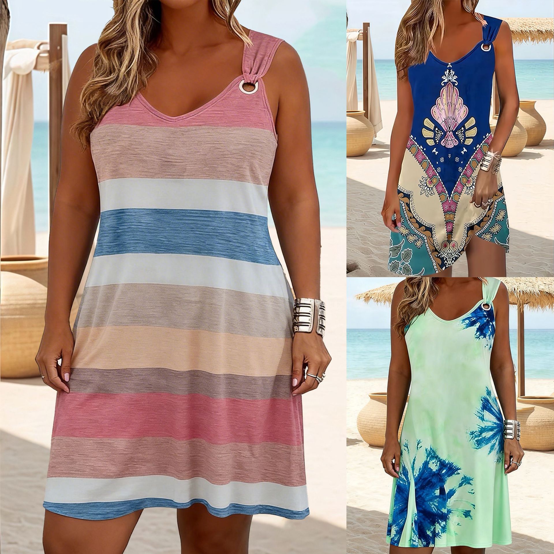 Gaun lengan pendek kerah V bermotif untuk wanita, pakaian wanita lintas batas Eropa dan Amerika dengan Amazon stasiun independen AliExpress