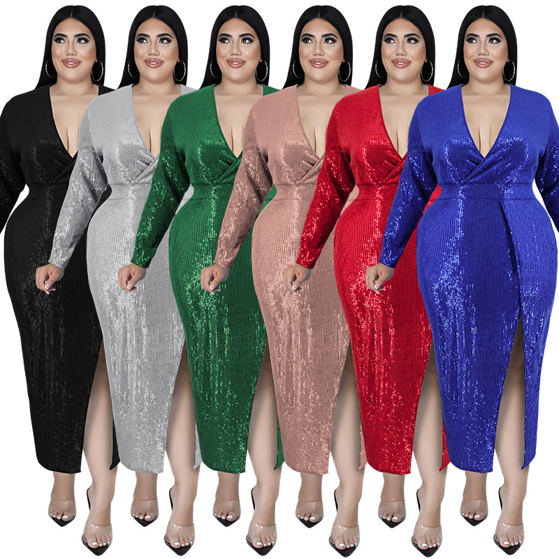 Q096 gaun Perdagangan Luar Negeri wanita, gaya Eropa dan Amerika baru musim gugur 2023 modis Afrika ukuran plus warna solid berlipat