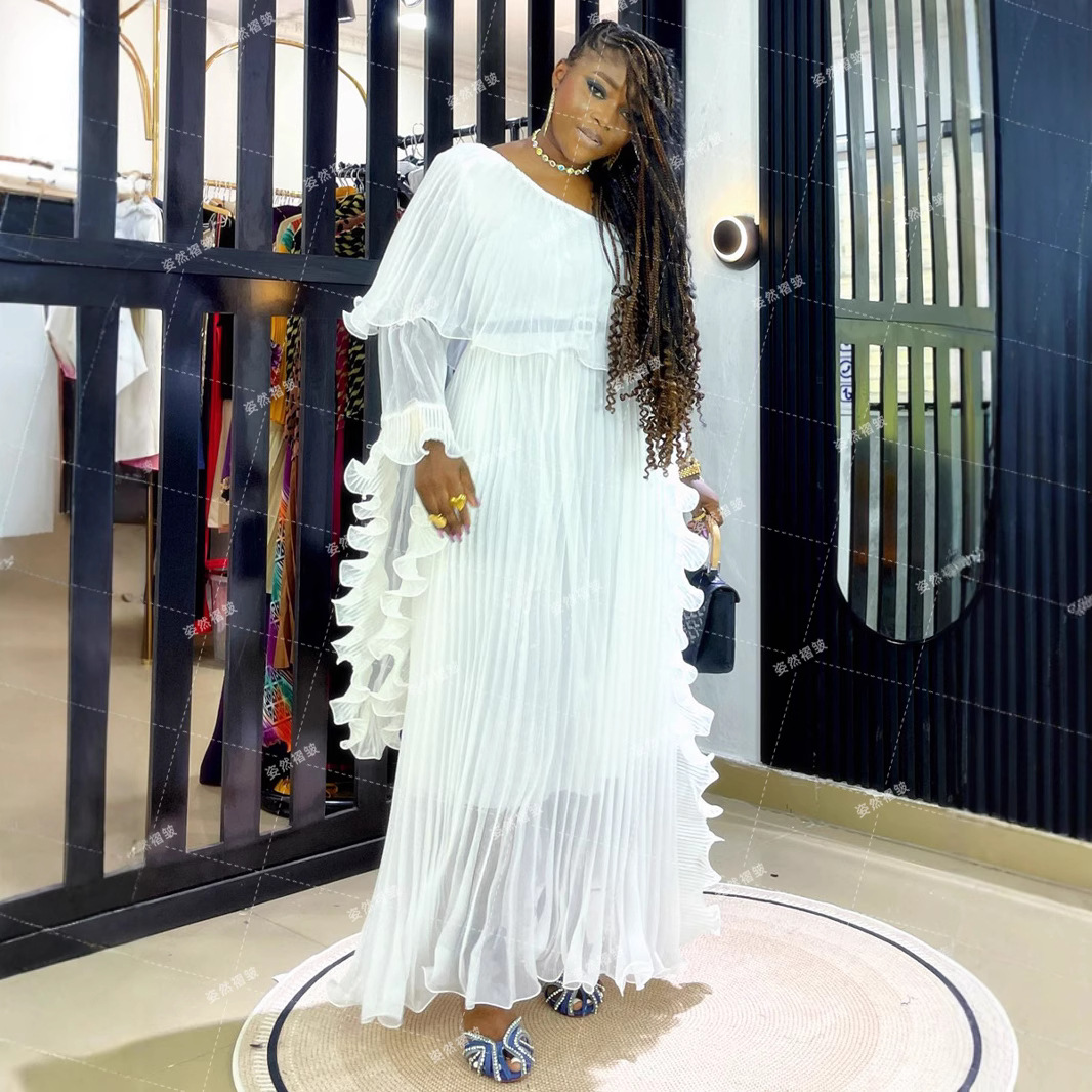 Pakaian Wanita Ukuran Besar Afrika Gaun Lipit Tiga Rumah Gaun Panjang Rok Lipit Gaya Liburan Model 2025 Rasa Premium Ringan Mewah