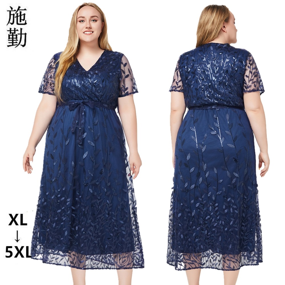 Stasiun Internasional TK Ukuran Besar Pakaian Wanita Seksi Murni Gaun Musim Panas Kerah V Membentuk Pinggang Membentuk Badan Rok Pendek Desain Terlihat Kurus