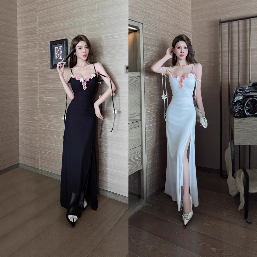 Rok Suspender Bunga Murni Modis Model Baru Musim Panas Rok Panjang Gaun Perut Seksi Malam Malam Pakaian Teknisi Mandi Kaki Lagu K