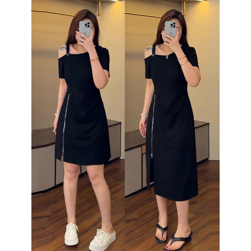 Pakaian Wanita Ukuran Besar Gaun Lengan Pendek Bahu Terbuka Gaya Desain Gadis Gemuk Rok Panjang Elegan Modis Model Baru Musim Panas 2025