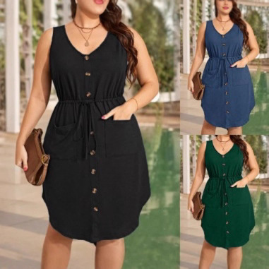 Q105 Amazon Stasiun Independen Perdagangan Luar Negeri 2024 Musim Panas Model Baru Pakaian Wanita Eropa dan Amerika Lintas Batas Warna Solid Gaun Lintas Batas Ukuran Besar
