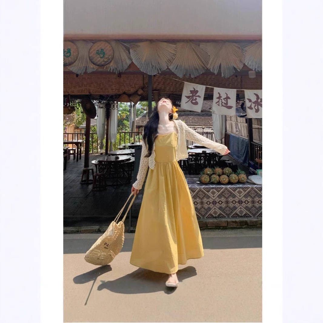Gaun Sling Liburan Pantai Sederhana Elegan Usia Muda Selebgram Kelas Atas Prancis Musim Panas 300 kg Ukuran Besar Wanita Gemuk