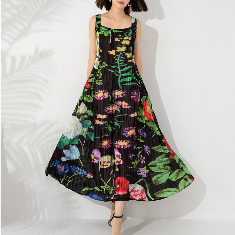 Gaun musim panas ukuran besar rok dasar musim panas wanita gaun tanpa lengan rompi panjang rok pantai pengiriman rok