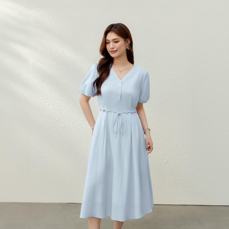 Rok Sifon Ukuran Besar Musim Panas 2023 Gaun Kerah Boneka Lengan Pendek Rok Panjang Sedang Wanita Gemuk Berpose Lipit Elegan Terlihat Langsing 304