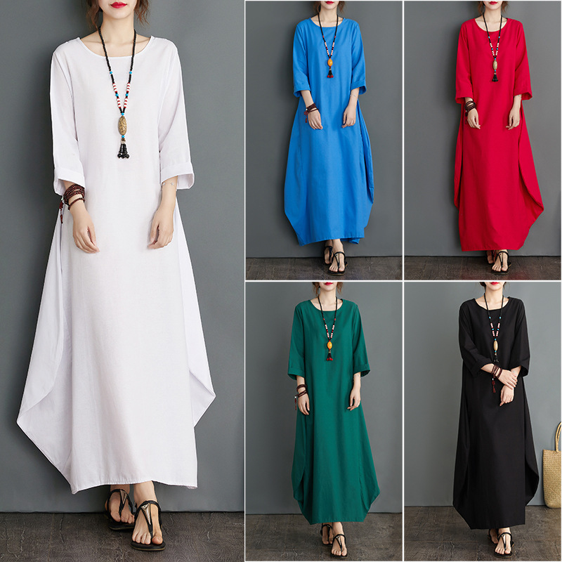 Real shot 2020 baru longgar ukuran besar gaun katun dan linen