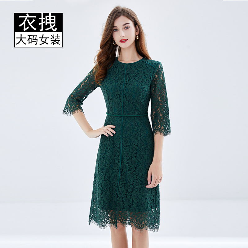 Gaun lengan kelopak renda wanita, cross-border khusus untuk Eropa dan Amerika baru elegan komuter ukuran besar