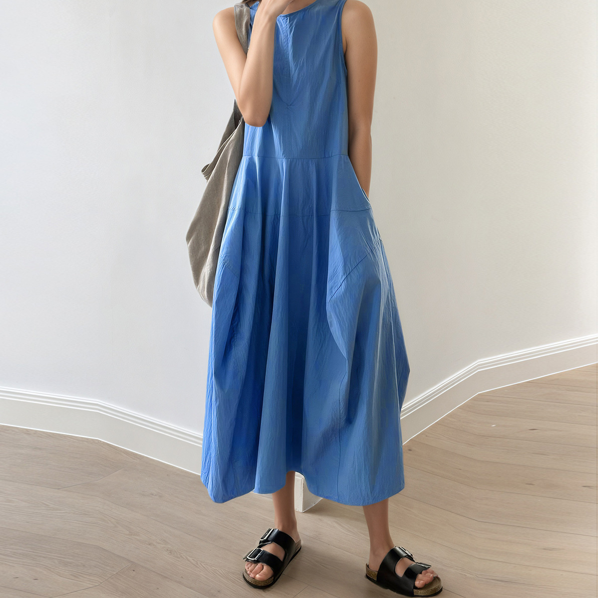 Gaun Tanpa Lengan Warna Polos Warna Biru Gaya Manis Gaya Manis Gaya Musim Panas Perdagangan Luar Negeri Amazon PG9938