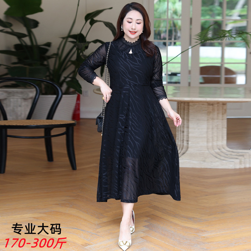 Gaun peri renda Prancis wanita ukuran besar, pakaian wanita musim gugur baru temperamen jala berongga 8386