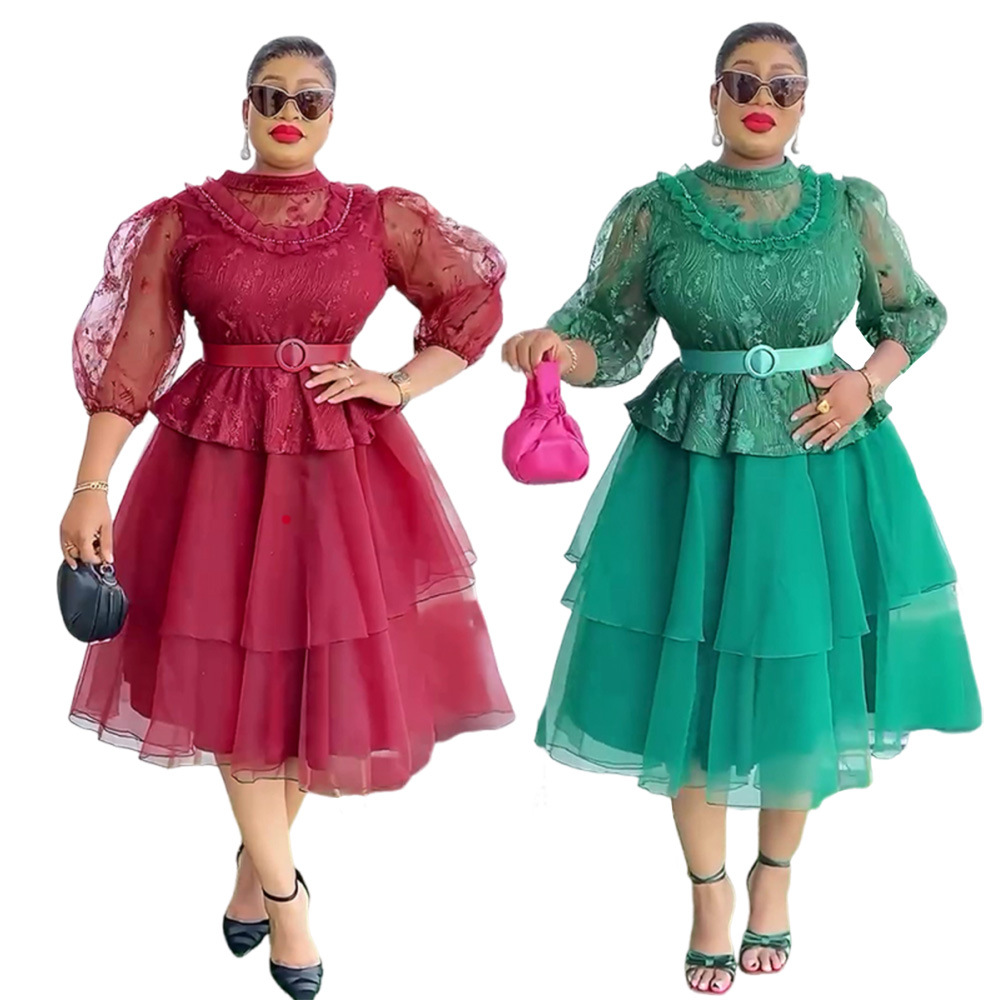 Pakaian Wanita Ukuran Besar Model Baru Lintas Batas Afrika AliExpress Gaun Kasa Modis Eropa dan Amerika Gaun Putri Gaun Tutu Gaun