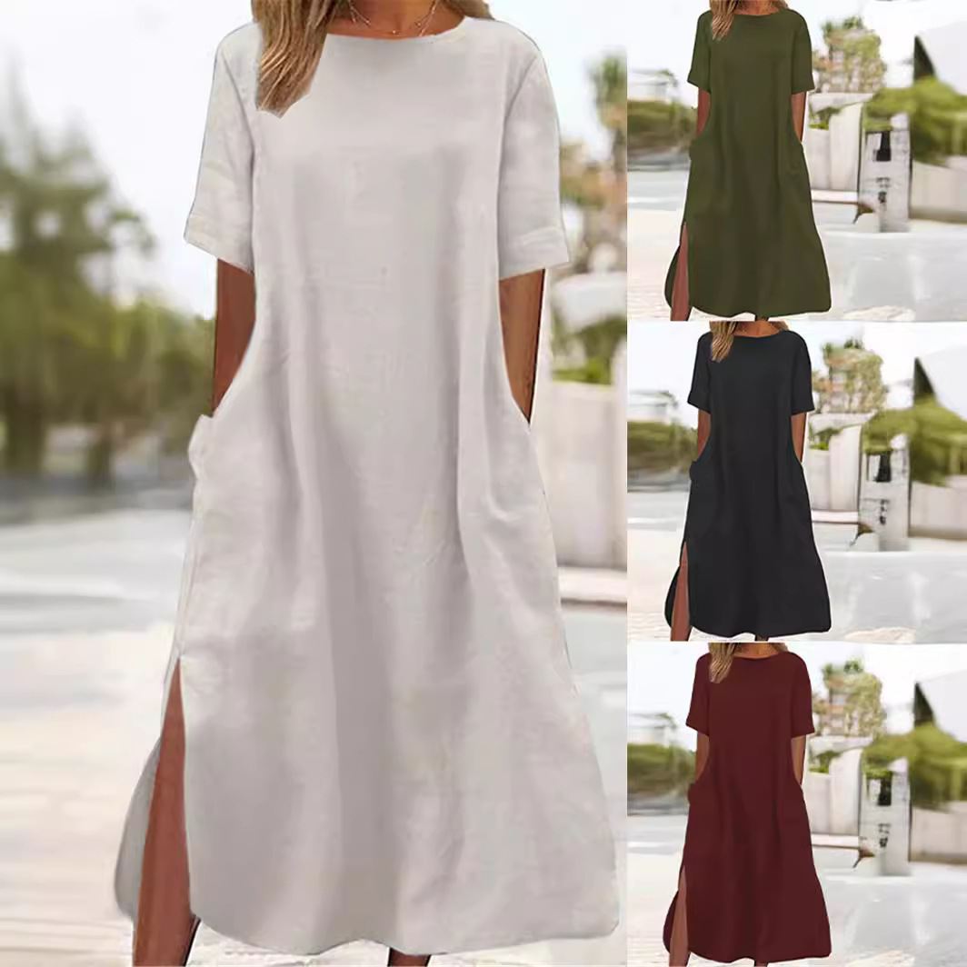 Dress panjang kasual wanita, pakaian Perdagangan Luar Negeri 2024 ukuran besar, Gaun panjang kasual Q239