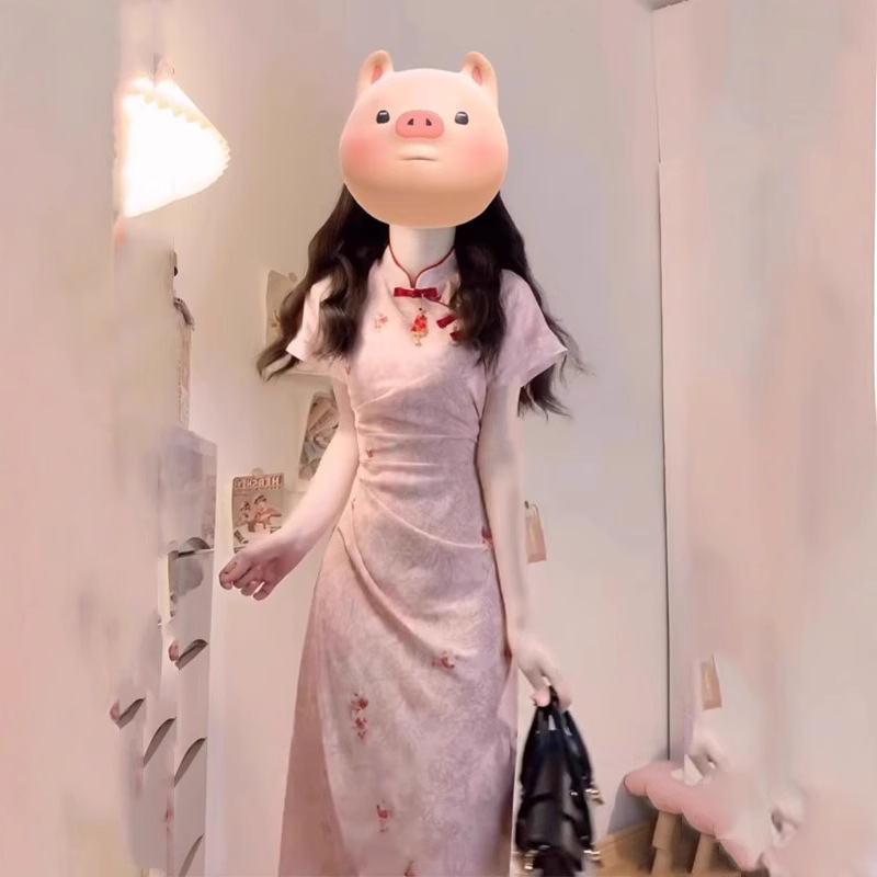 Gaun Cheongsam Modifikasi Gaya Tiongkok Baru Rok Panjang Menutupi Pinggul Ramping Terlihat Bagus Super Gaya Lembut Model Baru Musim Panas 2025
