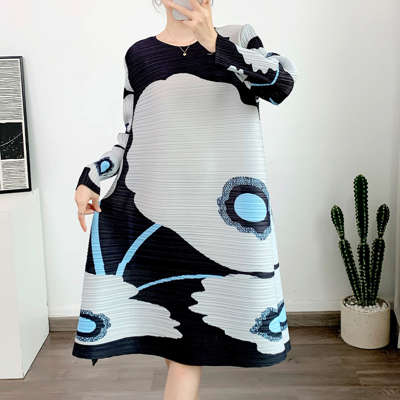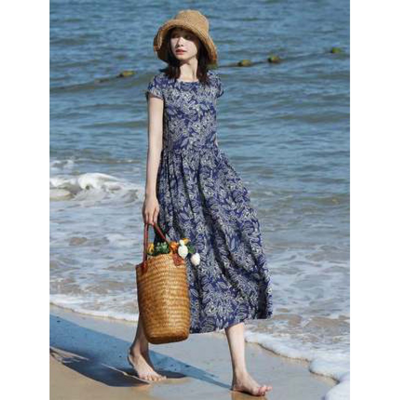 Gaun lipit 2023 gaun ibu ukuran plus longgar motif musim panas gaun a-line wanita gaya Barat