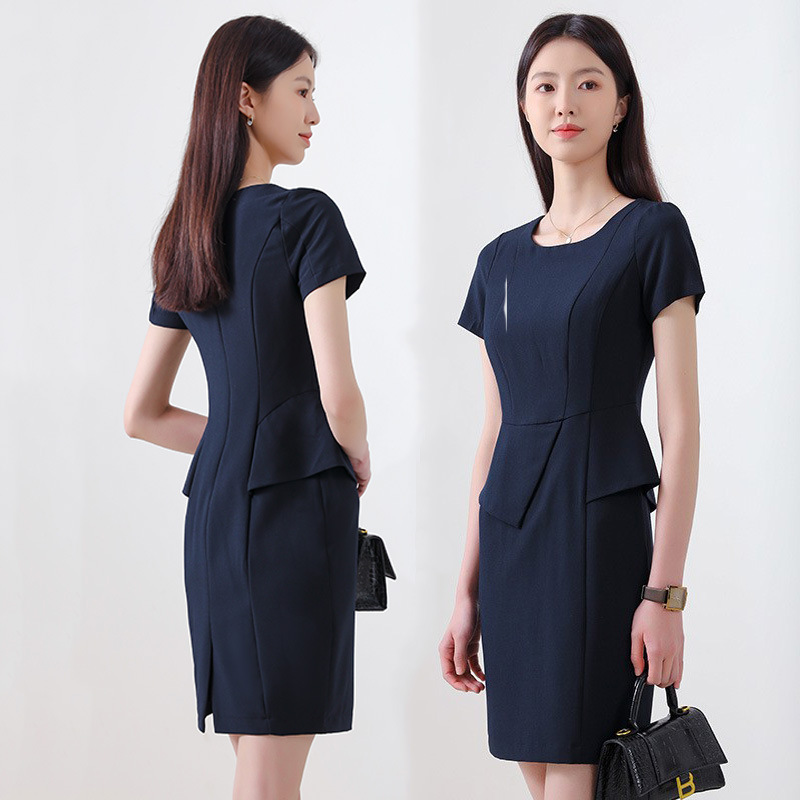 [Wow Kustom] Gaun Musim Panas Wanita Pakaian Wanita Bisnis Kerah Putih Terlihat Ramping Lengan Pendek Komuter Gaya Sederhana