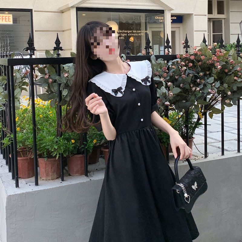 Pakaian Wanita Ukuran Besar Rok A-Line Longgar Murid Wanita Musim Panas Pita Kupu-Kupu Gaya Sekolah Gaun Membentuk Pinggang Terlihat Langsing Kerah Boneka