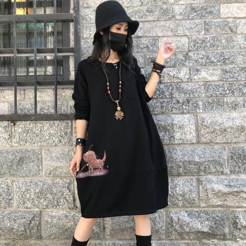 Gaun lengan panjang wanita, ukuran besar musim semi dan gugur baru 2021 kepribadian kasual trendi pelangsing