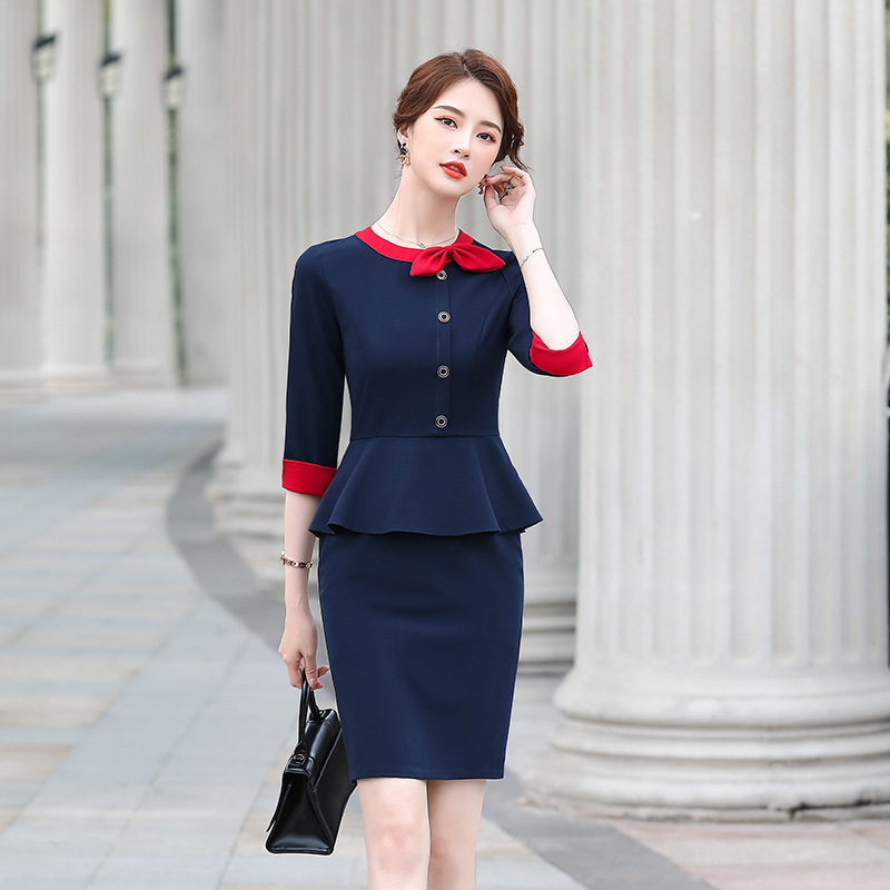 2023 musim semi dan musim panas setengah lengan musim Amazon pakaian bisnis hotel meja depan perhiasan toko ahli kecantikan pakaian kerja gaun