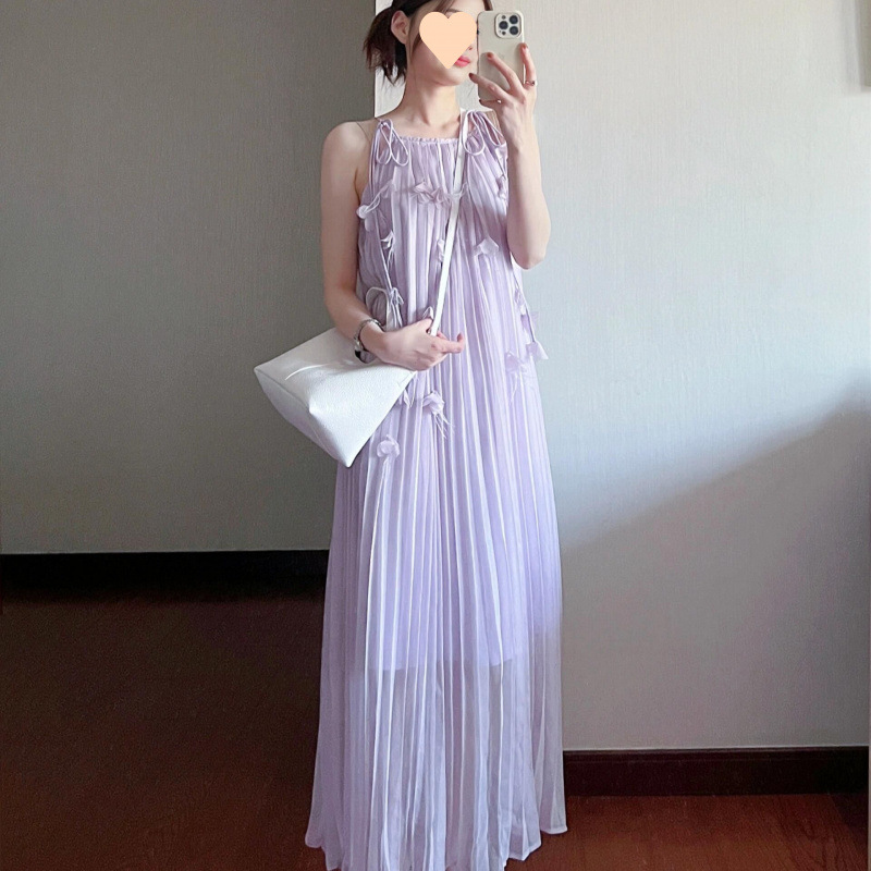 Gaun Bunga Sling Tiga Dimensi Pinggir Pantai Musim Panas Gaya Prancis Rok Panjang Elegan Peri Terlihat Langsing Longgar Liburan Model Baru