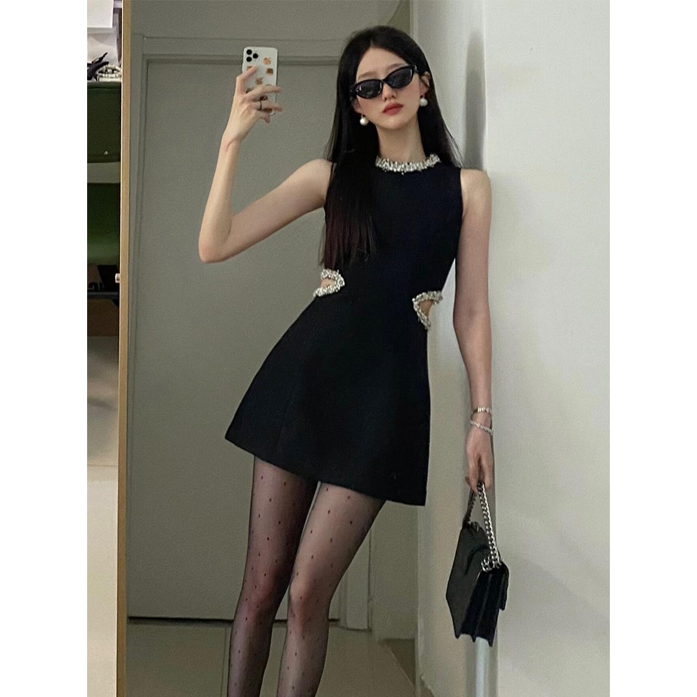 SYJ Rok Pendek A-line Terlihat Langsing Membentuk Pinggang Terlihat Langsing Gaun Tanpa Lengan Gadis Hot Seksi Gaya Perancis