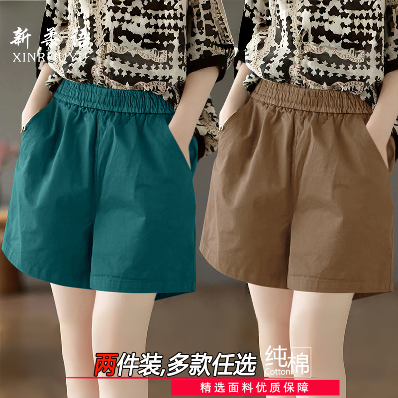 Celana Pendek Longgar Ukuran Besar Celana Kaki Lebar Pinggang Elastis Terlihat Ramping Model Baru Musim Panas 2025 Wanita Celana Kasual Seni Katun