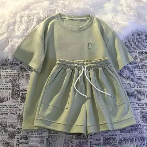 Celana Pendek Lengan Pendek Ukuran Besar Model Baru Setelan Kasual Olahraga Wanita Set Dua Potong Lari Terlihat Langsing Jalanan Longgar Modis Musim Panas Wanita