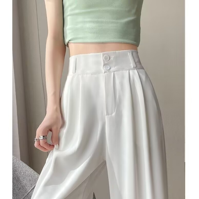 Celana kaki lebar wanita, bawahan sutra es longgar ramping pinggang tinggi ukuran besar musim gugur 2021
