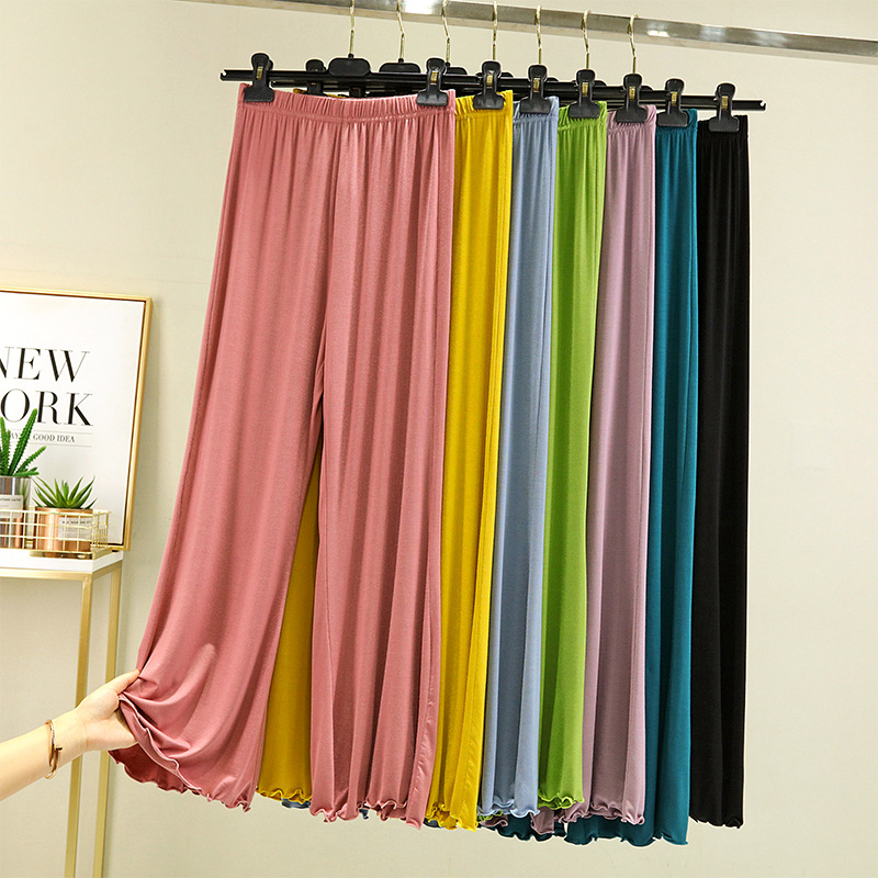 Celana piyama lurus Modal celana crop telinga kayu tipis gaya Korea musim panas celana ketat pakaian luar pelangsing longgar ukuran plus celana rumah