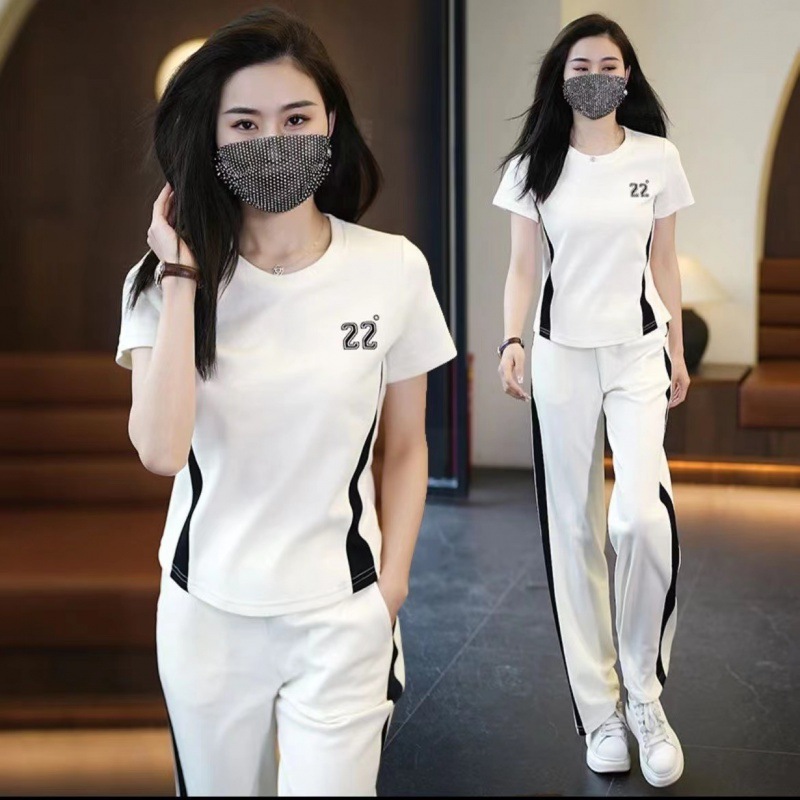 Setelan pakaian olahraga kasual wanita baru musim panas 2023 set dua potong celana kaki lebar lengan pendek pengurang usia modis elegan modis