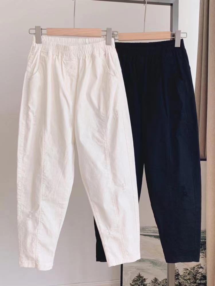 Celana kasual crop wanita baru musim semi dan musim gugur celana harem lobak pelangsing lurus ramping longgar katun dan linen ukuran besar